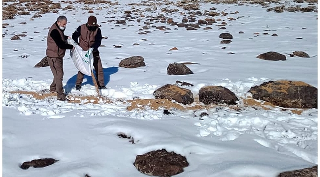 Elazığ'da karla kaplı yüksek rakımlı bölgelerde yaban hayvanları için yem bırakılırken, kaçak avlanma ile ilgili yapılan çalışmada da 1 şahıs yakalandı, 2 tüfek ele geçirildi.