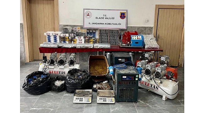 Edinilen bilgiye göre, İl Jandarma Komutanlığına bağlı Organize Suçlarla Mücadele Şube Müdürlüğü ekipleri, Keban ilçesinde kaçak tütün ve bandrolsüz sigara satışı yapıldığı ihbarını aldı. Cumhuriyet Başsavcılığı koordinesinde 3 şüpheliyi tespit eden ekipler, şahısların iş yerlerine operasyon gerçekleştirdi. Operasyonda, 72 bin 400 dolu makaron, 8 bin 20 adet boş sigara paketi, 12 kilo tütün, 1 adet sigara dolum makinesi, 3 adet hava kurutma makinesi, 2 adet kompresör ele geçirildi.
