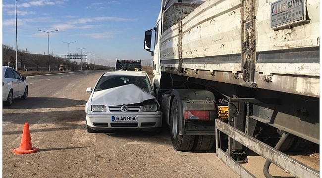 Elazığ'da kamyonun otomobile çarpması sonucu meydana gelen trafik kazasında 2'si ağır 4 kişi yaralandı. Kaza sonrası araçlardan biri tıra, diğeri ise tabelaya çarparak durdu.