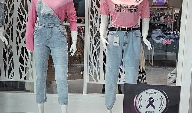Elazığ'da üzerinde 'Meme kanseri taramanızı gerçekleştirdiniz mi' yazılı tişörtler, vitrinlerdeki yerini aldı.