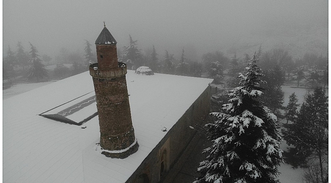Elazığ'ın tarihi Harput Mahallesi'nde kar ve sis ayrı bir güzellik ortaya çıkardı. Karla kaplı olan Harput Kalesi ve Eğri Minare, sisin de etkisiyle görünmez hale geldi.