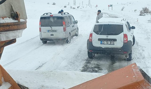 Elazığ'da etkisini sürdüren kar yağışından dolayı yolda mahsur kalan araçlar, İl Özel İdaresi ekipleri tarafından kurtarıldı.