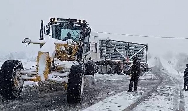 Elazığ'da etkisini sürdüren kar yağışından dolayı yolda mahsur kalan tırlar, İl Özel İdaresi ekipleri tarafından kurtarıldı.