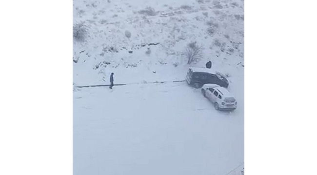 Bir çok ilde olduğu gibi Elazığ'da da kar yağışı etkili oldu, şehir beyaza büründü. Kent merkezinde ekipler, karla mücadele çalışması yaparken, karlı yollar araçlarıyla yola çıkanlara da zor anlar yaşattı. Çaydaçıra Mahallesi'nde bir otomobil, karla kaplanan bir rampayı çıkmaya çalıştı ama ilerleyemeyerek geri geri aşağı doğru sürüklendi. Aracın geldiğini gören bir kişi ise kenara çekilirken, otomobil bir araca çarptı. O anlar ise bir kişinin cep telefonu kamerasına yansıdı.