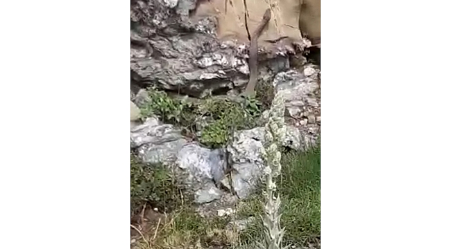 Elazığ'da bir vatandaş, yaklaşık 2 metre uzunluğundaki yılanı görünce ne yapacağını şaşırdı. Taşların arasında ilerleyen yılan, bir süre sonra gözden kaybolurken, o anlar cep telefonu kamerasıyla kaydedildi.