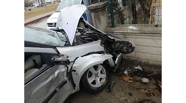 Elazığ'da iki otomobilin çarpışması sonucu meydana gelen trafik kazasında 2 kişi yaralanırken, kazaya karışan otomobillerden biri duvara çarparak durabildi.