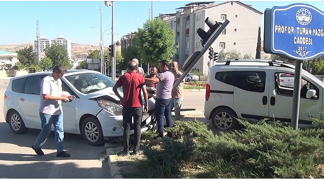 Elazığ'da kontrolden çıkan otomobil, önce hafif ticari araca ardından trafik ışığına çarparak durabildi. Kazada, yaralanan olmadı.
