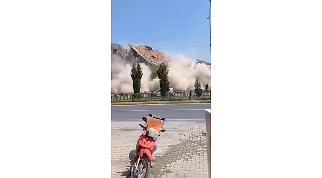 Kahramanmaraş merkezli depremlerde Elazığ'da ağır hasar gören bina, iş makinesinin dokunmasıyla yerle bir oldu. Yıkım esnasında caddenin trafiğe kapatılmaması ve araçların yıkım esnasında yoldan geçmesi yürekleri ağza getirdi.