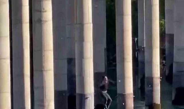 Elazığ'da Keban Köprüsü'nden atlayan gençlerin tehlikeli eğlencesi kameralara yansıdı.