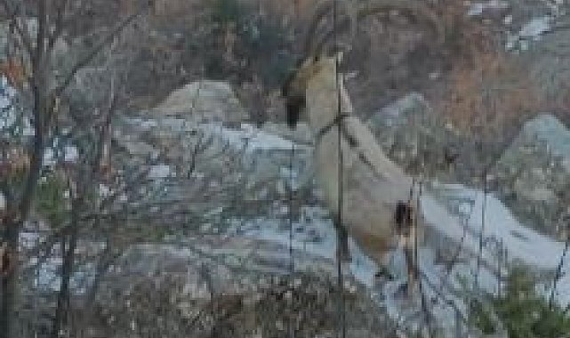 Elazığ'da nesli tükenmekte olan ve koruma altında bulunan çengel boynuzlu dağ keçisi sürüsü görüntülendi.