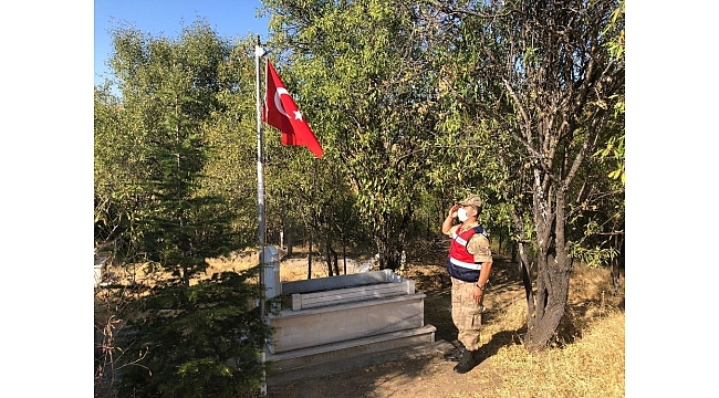 Elazığ'da Mehmetçik, belirli aralıklarla ilçe ve köylerde bulunan şehitlerin kabirlerini ziyaret ederek hem bayraklarını değiştiriyor hemde, bakımını yapıyor.