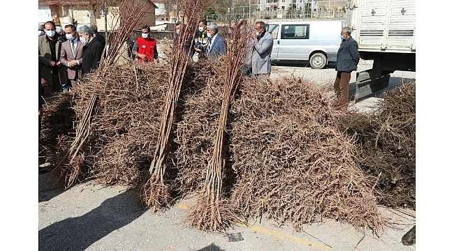 Üreticilere 7 bini ceviz, 3'er bini fıstık ve kayısı olmak üzere toplam 13 bin fidan teslim edilirken, projenin desteklenerek sürdürülmeye devam edeceği aktarıldı.