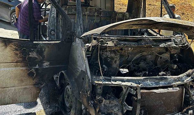 Elazığ'da alevlere teslim olan minibüs, yanarak kullanılamaz hale geldi.
