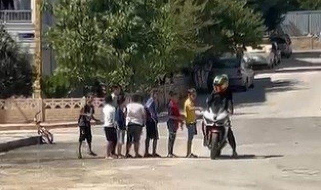 Ulukent Mahallesi'nde bir motosiklet sürücüsü, önünü kesen 8 çocuğu kırmayarak durdu. Çocuklar sıraya girerek motoru inceledi ve sürücünün ara gaz vermesiyle keyifli anlar yaşadı. O anlar ise uzaktan cep telefonu kamerasıyla kaydedilerek anbean görüntülendi.