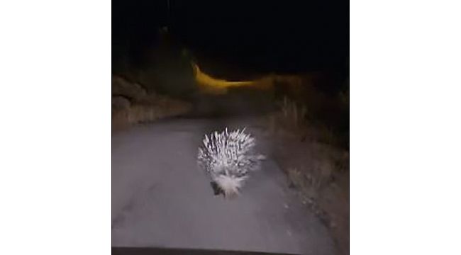 Afrika'da yaşadığı bilinen ve nadiren Türkiye'de de görülen oklu kirpi, Hıdırbaba köyünde bir sürücü tarafından görüntülendi. Köy yolunda görüntülenen oklu kirpi daha sonra gözden kaybolurken, o anlar sürücü tarafından cep telefonu kamerası ile kayıt altına alındı.