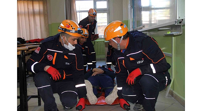 Tatbikata Vali Dr. Ömer Toraman'ın yanı sıra Belediye Başkanı Şahin Şerifoğulları, İl Emniyet Müdürü Celal Sel, İl Milli Eğitim Müdürü Mehmet Yiğit, STK temsilcileri ve öğrenciler katıldı.