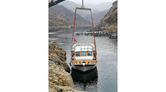 Elazığ'da bulunan kanyonlarda hizmet verecek olan gezi teknesi, bakım ve onarımlarının ardından suya indirildi.
