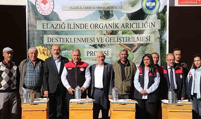 Organik arıcılığın desteklenmesi ve sürdürülebilirliğinin sağlanması amacıyla hazırlanan Organik Arıcılığın Desteklenmesi ve Geliştirilmesi Projesi, yüzde 75 desteği ve üreticilere yüzde 25 katkısı ile toplam 605 bin 400 TL bütçe ile hayata geçirildi. Proje kapsamında organik arıcılık yapan 15 üreticinin her biri için 10 adet organik boş kovan 5 kilo organik bal mumu, 6 litre varroa ilacı, maske, eldiven, körük, el demiri gibi ekipmanlar verilirken kontrol ve sertifikasyon hizmeti sağlandı. Dağıtım törenine, İl Tarım ve Orman Müdürü Saadettin Taşkesen, Elazığ Arı Yetiştiricileri Birliği Başkanı Kimyager Fırat Canbay, şube müdürleri, STK temsilcileri, üreticiler ve teknik personel katıldı.