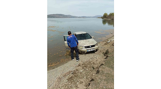 Göle düşen otomobil, AFAD ve Su Altı Grup Amirliği ekiplerinin çalışması sonrası gölden çıkartıldı.