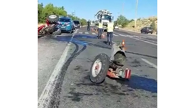 Elazığ'da otomobil ile çarpışan traktör ikiye bölündü. Kazada, 2 kişi yaralandı.
