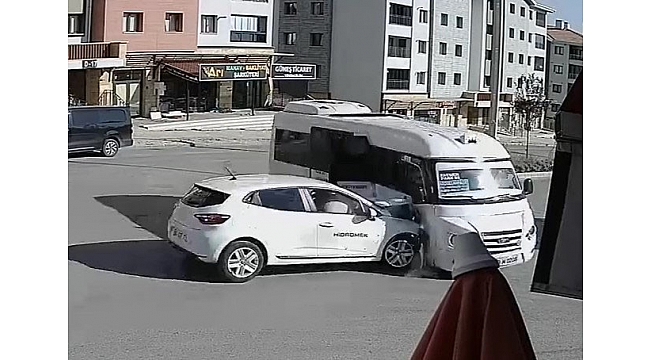Elazığ'da yolcu minibüsü ile otomobilin çarpışması sonucu meydana gelen trafik kazasında 1 kişi yaralanırken, o anlar güvenlik kameralarına yansıdı.