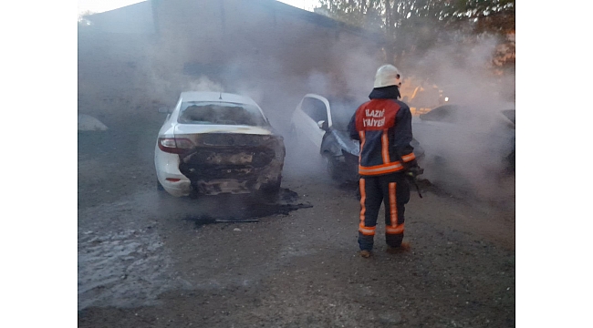 Elazığ'da park halinde yanan 3 araç itfaiye ekipleri tarafından söndürüldü.