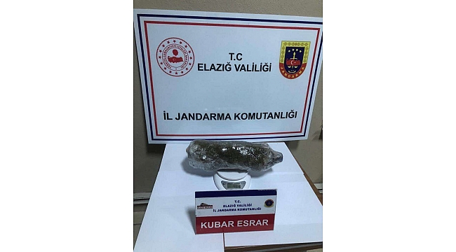 Elazığ'da İl Jandarma Komutanlığı Kaçakçılık ve Organize Suçlarla Mücadele Şube ekipleri, kentte uyuşturucuyla mücadele çerçevesinde yaptığı çalışmalarda B.B. isimli şüphelinin uyuşturucu madde kaçıracağı bilgisine ulaştı. Jandarma ekiplerince şüphelinin bulunduğu araç tespit edilerek operasyon planlandı. Şüphelinin bulunduğu araç Elazığ-Malatya kara yolunda durduruldu ve arama yapıldı. Araçta ve şahısta yapılan arama sonucunda şüphelinin çantasında pet şişe içerisine zulalanmış yarım kilo kubar esrar maddesi ele geçirildi.