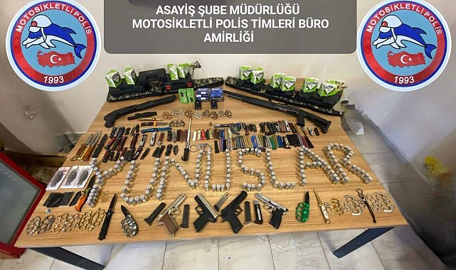 Elazığ Cumhuriyet Başsavcılığı Koordinesinde İl Emniyet Müdürlüğü ekipleri tarafından genel güvenlik ve genel asayişin sağlanması, suça konu unsurların tespiti ve şüpheli şahısların yakalanmasına yönelik Cumhuriyet Mahallesi'nde bulunan bir ikamette arama yapıldı. Aramada; 2 adet ruhsatsız pompalı tüfek ve 269 adet kartuş, 3 adet kurusıkı tabanca ve tabancalara ait 410 adet fişek, 104 adet kesici alet, 2 adet elektro şok cihazı, 26 adet muşta, 1 adet teleskopik jop ve 1 adet kelepçe ele geçirildi.