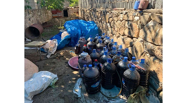 Elazığ'da jandarma ekiplerinin düzenlediği sahte içki operasyonunda litrelerce alkol ele geçirilirken 2 şüpheli gözaltına alındı.