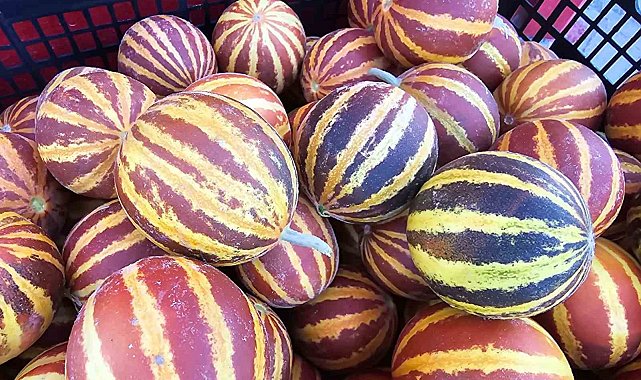 Elazığ'da kokusu, tadı ve görüntüsüyle ile dikkat çeken şamama kavunu tezgahlarda yerini aldı.