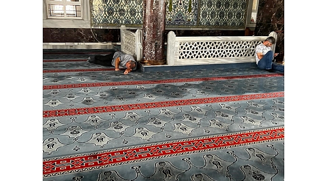 Elazığ'da vatandaşlar bunaltan sıcaklardan korunmak için camilerde serinliyor.