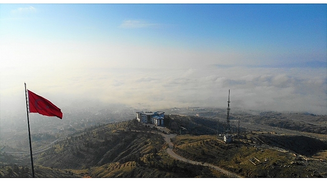 Elazığ'da sis etkili olurken, kent merkezi bulutlar altında kaldı.