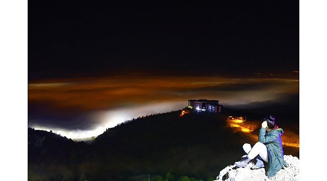 İHA muhabirleri, sis ve şehir ışıklarıyla oluşan görsel şöleni görüntüledi.