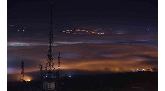 Elazığ kent geneli sis denizinde kaybolurken, sisin gece ışıklarıyla birlikte görünüşü görsel şölen oluşturdu.