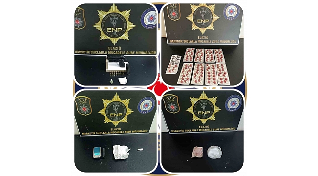 Elazığ Cumhuriyet Başsavcılığı koordinesinde İl Emniyet Müdürlüğü Narkotik Suçlarla Mücadele Şube Müdürlüğü tarafından, uyuşturucu ile mücadele kapsamında uyuşturucu madde kullanan şahıslara ve sokak satıcılarına yönelik operasyon yapıldı. Operasyonda, 5 parça halinde toplam 24,98 gram metamfetamin maddesi, 124 adet sentetik ecza maddesi, 1 adet ruhsatsız tabanca ve tabancaya ait 16 adet fişek ele geçirildi.