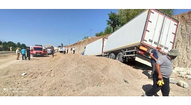Elazığ'da sürücüsünün kontrolünden çıkan tır, kum birikintisine girdi. Kazada bir kişi hafif yaralandı.