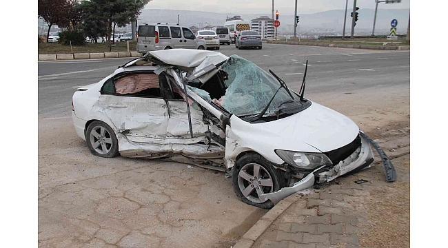 Elazığ'da tır ile otomobilin çarpışması sonucu meydana gelen kazada, otomobil kağıt gibi ezilerek hurdaya döndü. Kazada sürücü yaralandı.