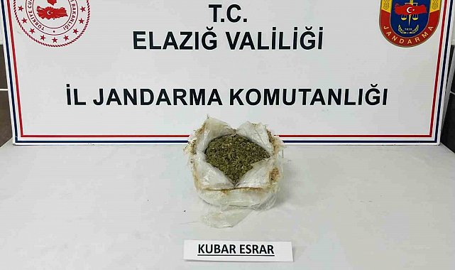Elazığ Cumhuriyet Başsavcılığı koordinesinde, İl Jandarma Komutanlığı ekiplerinin uyuşturucuyla mücadele çalışmaları sürüyor. Bu çerçevede Gülüşkür Yol Kontrol Noktasında yolcu otobüsünde seyahat eden S.O.'nun üzerinde yapılan aramada, 1 kilo 429 gram kubar esrar maddesi ele geçirildi. Üzerinde uyuşturucu çıkan şüpheli ise jandarma ekiplerince gözaltına alındı. Olayla ilgili adli tahkikatın sürdüğü bildirildi.
