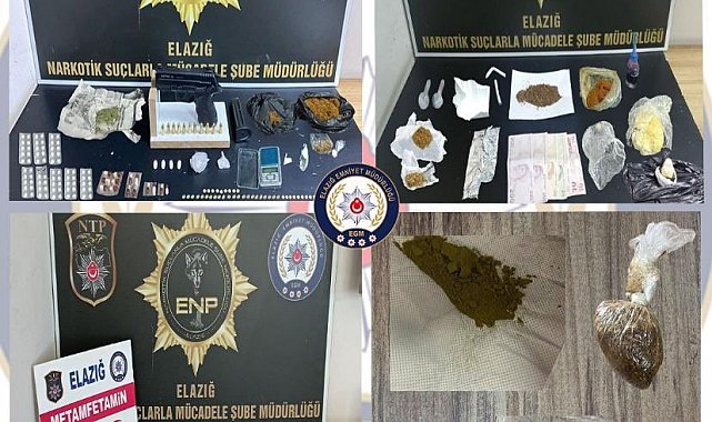 Elazığ İl Emniyet Müdürlüğü Narkotik Suçlarla Mücadele Şube Müdürlüğü ekipleri tarafından, uyuşturucu ile mücadele kapsamında uyuşturucu ve uyarıcı madde ticareti, kullanımı ve sevkiyatının engellenmesine yönelik çalışmalar sürüyor. Çalışmalarda, sınır kapısından ülkeye pasaportla giren yabancı uyruklu 2 şüpheli şahıs Elazığ'da yakalandı. Daha önceden kapsüller halinde yuttukları tespit edilen toplam, 48 parça halinde 585 gram metamfetamin maddesi hastane ortamında çıkartıldı. Ayrıca kentte yapılan diğer operasyonlarda; 12 parça halinde 397,35 gram sentetik kannabinoid maddesi, 7 parça halinde 59,45 gr esrar maddesi, 96 adet sentetik ecza maddesi, 1 adet hassas terazi, 1 adet ruhsatsız tabanca ve tabancaya ait 11 adet fişek ele geçirildi.