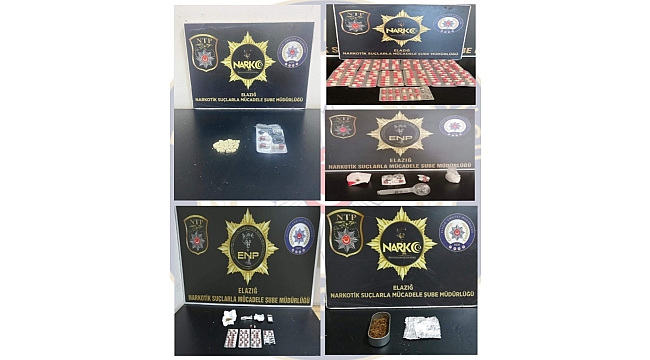 Elazığ Cumhuriyet Başsavcılığı koordinesinde İl Emniyet Müdürlüğü Narkotik Suçlarla Mücadele Şube Müdürlüğü tarafından, uyuşturucu ile mücadele çerçevesinde uyuşturucu madde kullanan şahıslara ve sokak satıcılarına yönelik çalışmalar sürüyor. Bu çerçevede son bir hafta içerisinde yapılan uygulamalarda 8 şüpheli şahıs yakalanarak gözaltına alındı. Şüphelilerden 5'ine 'Uyuşturucu Madde Kullanmak' suçundan adli işlem yapılırken adliyeye sevk edilen 3 şüpheli ise 'Uyuşturucu Madde Ticareti Yapmak' suçundan tutuklanarak cezaevine gönderildi.
