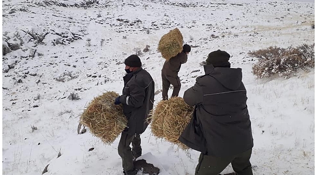 Bir çok ilde olduğu gibi Elazığ'da da geçtiğimiz hafta etkili olan kar yağışının ardından özellikle yüksek rakımlı yerler beyaz örtü ile kaplandı. Yaban hayvanlarının yiyecek bulmasında zorlandığı bu günlerde ise Doğa Koruma ve Milli Parklar Elazığ Şube Müdürlüğü'ne bağlı ekipler her gün belirlenen bölgelere saman ve yem bırakmaya başladı. Dağ keçileri ve kuşlar için yüksek rakımlı bölgeleri tercih eden ekiplerin gün aşırı faaliyetlerine devam ettiği bildirildi.