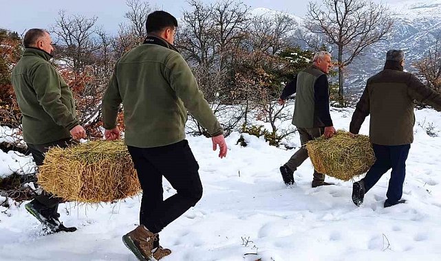 Elazığ'da kış mevsimi nedeniyle yüksek rakımlı bölgelere yaban hayvanları için yem bırakıldı.