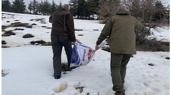 Elazığ'da kış mevsimi nedeniyle yüksek rakımlı bölgelere yaban hayvanları için yem bırakıldı.