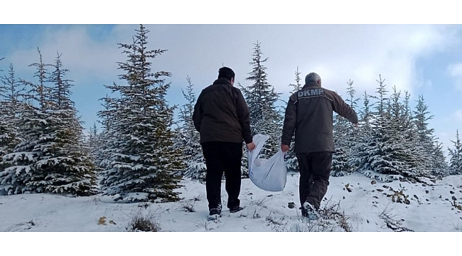 Elazığ'da kış mevsimi nedeniyle yüksek rakımlı bölgelere yaban hayvanları için yem bırakıldı.