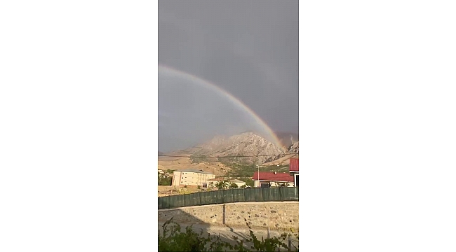 Elazığ'da yağmur sonrası ortaya çıkan gökkuşağı, seyrine doyumsuz bir manzara oluşturdu.