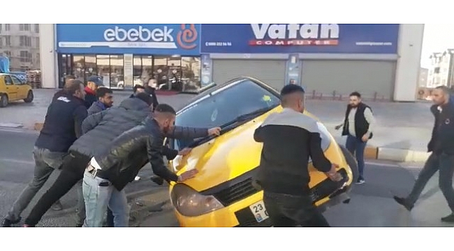 Olay, merkeze bağlı Malatya Caddesinde meydana geldi. Edinilen bilgiye göre, 23 T 0036 plakalı ticari taksi, sürücüsünün direksiyon hakimiyetini kaybetmesi sonucu refüje çarparak yan yattı. Kazada sürücü hafif yaralanırken, yan yatan otomobili çevredeki vatandaşlar kendi imkanlarıyla düzeltti. Haber verilmesi üzerine olay yerine sağlık ve polis ekipleri sevk edildi. Yaralı, olay yerinde yapılan müdahalenin ardından ambulansla Fırat Üniversitesi Hastanesine kaldırıldı.