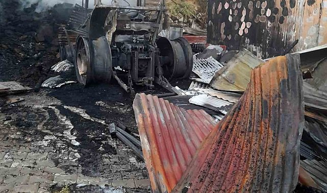 Elazığ'ın Kovancılar ilçesinde park halindeyken alev alan traktör kullanılamaz hale geldi.
