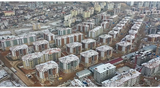 Elazığ'da geçtiğimiz yıl yaşanan 6.8'lik depremin ardından kentte yapımına başlanan 20 bin konuttan tamamlanıp hak sahiplerine teslim edilen ve inşası süren konutlar drone ile görüntülendi.