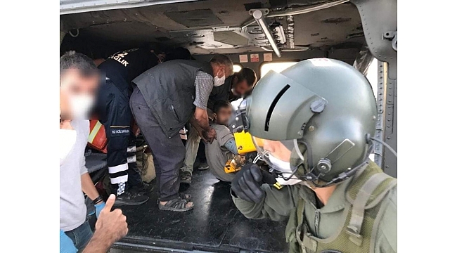 Alınan bilgiye göre Arıcak ilçesi Üçocak Beldesi'nde mısır silajı yapan Muharrem Ölmez (43), ayağını silaj makinesine kaptırdı. Çevredekilerin haber vermesi üzerine olay yerine ambulans ve jandarma ekipleri sevk edildi. Olay yerine gelen sağlık ekipleri Ölmez'e ilk müdahaleyi yaparken, ayağının durumunun ağır olması üzerine helikopter talep etti.Durumun bildirildiği Elazığ Valisi Vali Erkaya Yırık'ın talimatıyla jandarmaya ait helikopter sevk edildi.Bölgeye giden helikopter sağlık personeli ile birlikte yaralıyı alarak Elazığ'a getirdi.Yaralı Fethi Sekin Şehir Hastanesi'ne kaldırılarak tedavi altına alındı.
