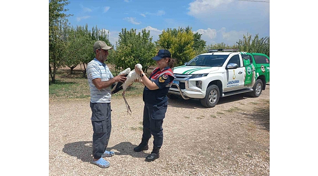 Elazığ'da vatandaşlar tarafından yaralı halde bulunan leylek, jandarma ekipleri tarafından koruma altına alındı.